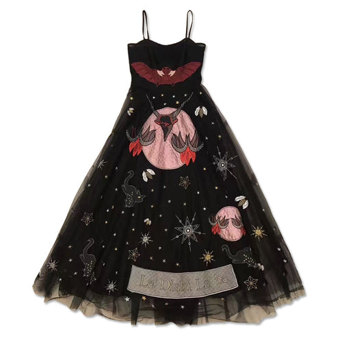 New dress Voile Strapless runway black tulle Spaghetti Strap Embroidery embroidery yarn custom